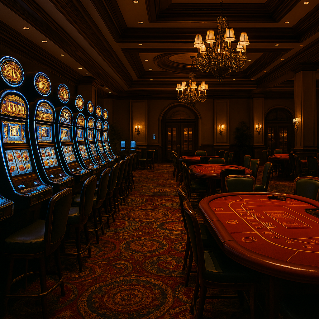 Οι χώροι των καζίνο και των εστιατορίων μας είναι σχεδιασμένοι με προσοχή στη λεπτομέρεια — από τον ατμοσφαιρικό φωτισμό και τα πολυτελή φινιρίσματα έως την διακριτική και επαγγελματική εξυπηρέτηση. Είναι το μέρος όπου η διασκέδαση συναντά την κομψότητα και οι βραδιές αποκτούν ξεχωριστό χαρακτήρα. Επιπλέον, προσφέρουμε τακτικά θεματικές εκδηλώσεις, βραδιές με ζωντανή μουσική και αποκλειστικές γευσιγνωσίες κρασιών και ουίσκι. Ιδανικό για μια ρομαντική έξοδο, επαγγελματική συνάντηση ή εταιρική εκδήλωση.